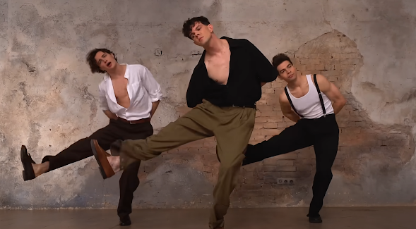 Trójka tancerzy porusza się w sposób przypominający taniec marionetek. Ich ruchy są rwane, niepewne, jakby ktoś pociągał za niewidzialne sznurki zmęczenia. Ciała wydają się bezwładne, a jednak każdy gest pozostaje wycyzelowany, ozdobny, wręcz przestylizowany. Ta choreografia niesie ze sobą niezwykle inspirujący, choć przewrotny przekaz: „Skoro i tak nie mam siły wstać, niech mój upadek będzie chociaż widowiskowy”. Wszystko to w lekkim humorystyczno – ironicznym tonie.